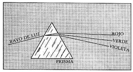 Figura 4. Es posible "descomponer" un rayo de luz en sus colores componentes haciéndolo pasar por un prisma. Al arco iris resultante se le llama el espectro de dicho rayo de luz. El estudio del espectro nos revela las características del cuerpo que emitió la luz.