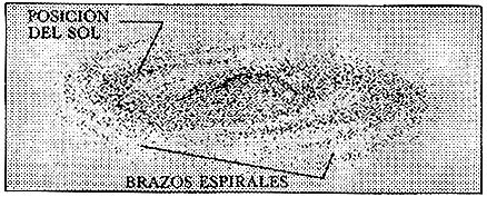 Figura 15. Nuestra galaxia, la Vía Láctea, es un conglomerado de forma aplanada constituido por cien mil millones de estrellas. Nuestro Sol se halla cerca de una de sus orillas.